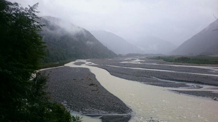 It rained the whole night and continues during the day. I need to rest my knee anyway and also recover mentally. Adele’s leg is hurt so badly she needs to go to the hospital in Christchurch (luckily there still are trains going there). Peggy should have been here yesterday but the busses are now diverting over Lewis Pass to Greymouth, so that’s where she ended up yesterday! We all take our time, eating, sleeping, finally the cafe and shop opens to get some fresh food and yoghurt (in my case) or pies and coffee… The opening times are now limited because no one is here at Arthur’s Pass with the road being closed and the bad weather! Peggy suggests that we meet again in Lake Tekapo as she cannot get through to Arthur’s Pass and she wants to see the Fox Glacier etc anyway.