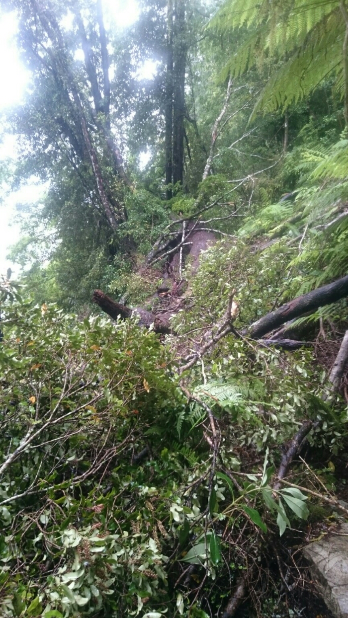 I wasn’t physically exhausted as we walked slowly but the constant worry about the river level, the concentration while crossing, the complete focus on trying to get out of this nightmare was taking its toll. Difficult to endure that the trail markers send you right in the gorse. Finally we can see the footbridge. But also that something seems wrong on the other side. It’s a huge landslide which separated Arthur’s Pass from Greymouth.