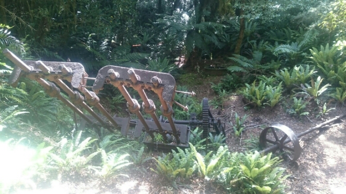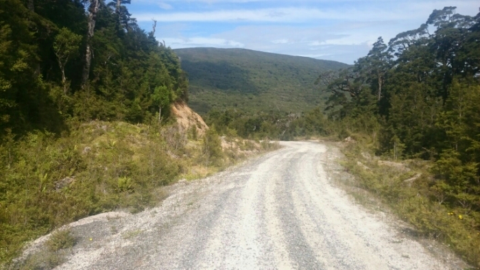 After a short break we continue the muddy trail till reaching a gravel road. One kilometer further, the next track starts, along an old water race that was used till the 1950s for gold mining purposes. In the beginning, it’s interesting to walk relatively flat along the water race in the bush. It’s an obstacle race though, every few hundred metres you have to climb up or down, walk over a stream, a log bridge, around a huge tree,…