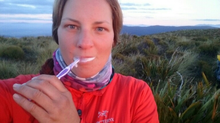 After more mud and more enjoyable hiking we reach Longwood Summit. Wow, a great view. We decide to actually camp here, seeing sunset and sunrise, hoping the weather will stay as good as we are very exposed up here! We are completely dirty and can’t wash, but, wow, what a stunning view for dinner in the evening sun!