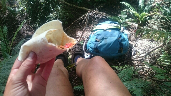 After already 19km this morning we are at 11.30am at the start of the Longwood trail. Now things are getting serious. We have to hike up to some 800m altitude again to Bald Hill. The trail is muddy and soon I am drenched from sweating. It’s hot but at least today the forest provides some shelter from the sun. We soon stop for lunch and to dry a bit.