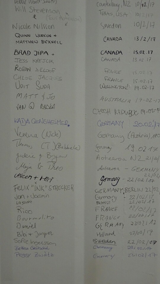 In town we sign the finisher wall in the little museum before hitting the road and trying to get a ride back to Invercargill. We meet Elodie and Frank, the French couple I last saw on the ferry to Queen Charlotte Track. What a coincidence, first and last day on the trail in the South Island !