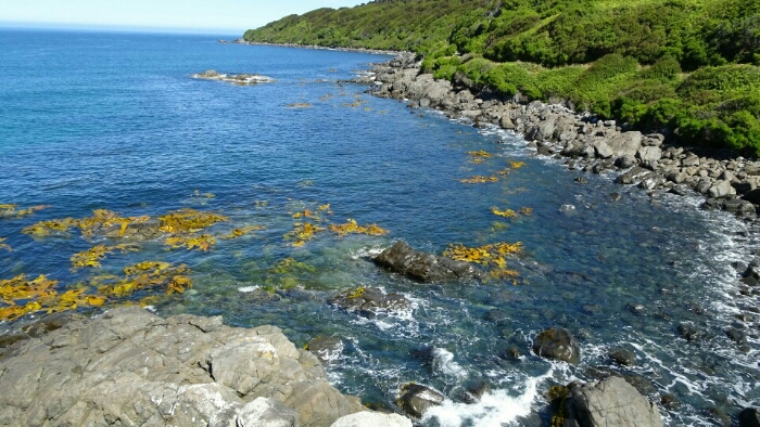 After 17km on the highway, we get to that nice big Bluff sign/letters I already saw on many pictures. Time for a quick photo session. Usually the trail veers off here to the coastline further south around the hill. But just last night I saw that it’s closed due to some crazy bulls on farmland we shouldn’t cross. This means: we continue on the highway instead and through Bluff town, we miss out on the best part of today’s section, we walk through the town which has a liquor store and can buy champagne, we will miss out on a few kilometers…