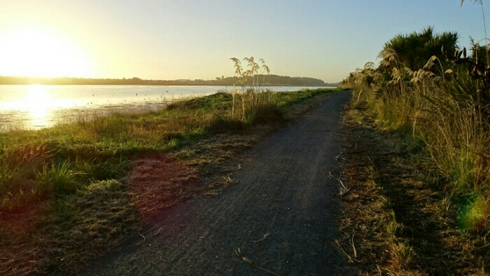 The first 10km are on a cycleway along the estuary on a gravel road. With the morning sun the beginning is beautiful, but afterwards not much exciting.