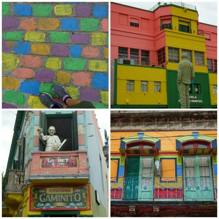 Some houses have been rebuilt as they were originally for tourists, but you can mainly find horrible souvenir shops, expensive restaurants with tango dancers, tango dancers in the street who pose for pictures (and money), a “Maradona” who you can take pictures with…. Still interesting to hear about the history and take some colourful pictures before heading to the famous stadium of the Boca Juniors.