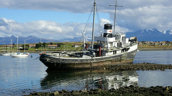 There’s the sea and the town and behind it, some impressive and steep mountains in weird shapes. I love it! At the other side of the channel, Isla Navarino and in between colourful boats of all sizes. I walk a few kilometers and enjoy the fresh air, the sunshine and this nice little place. How could the setting be any better, mountains and sea!