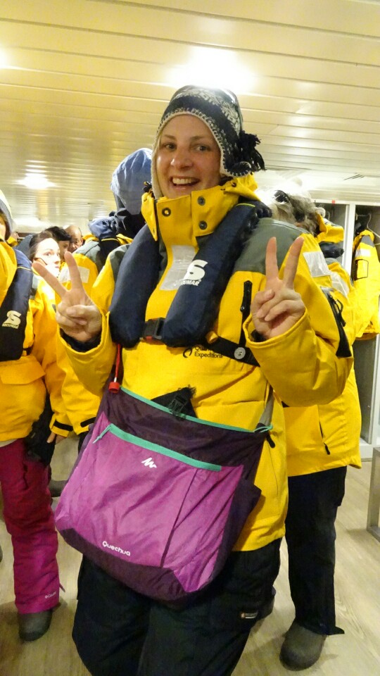 The afternoon passes quickly with lectures on penguins and whales, an introduction to yoga classes, afternoon tea and a daily recap and briefing before we already have dinner. It’s a seated 5 course dinner and I still can’t believe how I went from dehydrated couscous or glassnoodles to such fancy meals, enjoying as much salad, fruits, vegetables and fish as I can! The crew is extremely nice and I get along very well with my room-mate Marna. I couldn’t be happier!