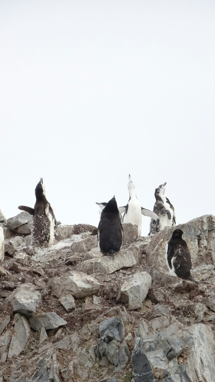 Walk in between, take more pictures, enjoy, almost cry of joy for being here. Even though we are 100 people it never feels too crowded as we are well dispatched over the island and can follow a path. The penguins are moulting right now and apparently it’s a tough time for them, they are very weak and just stand around, all energy is needed for the moulting process. I heard before the trip how badly the penguins poo smells but it’s not too bad in my view.