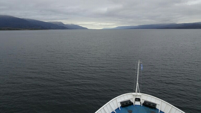 Cruising through the Beagle Channel, I am outside as long as I can to take the views in. It’s grey and covered but impressive and the water is so calm in this sheltered place.