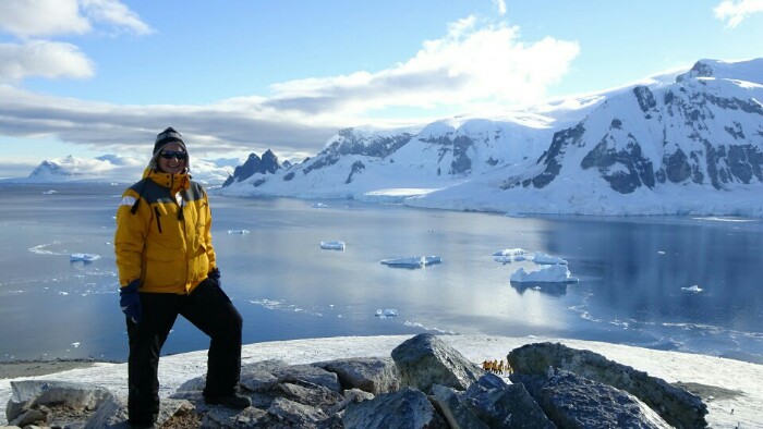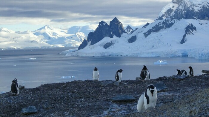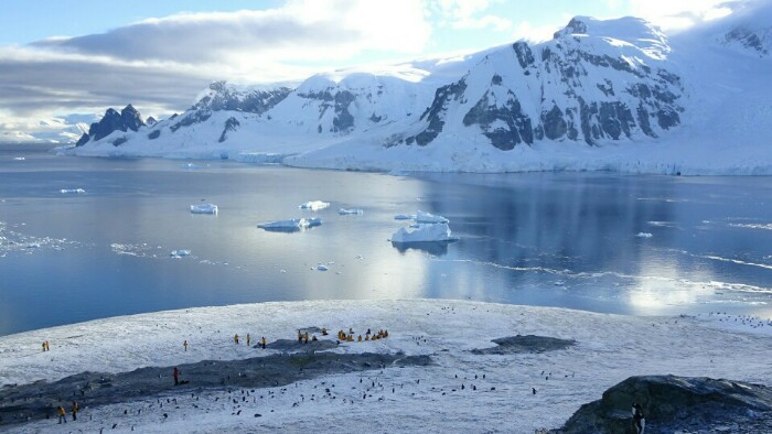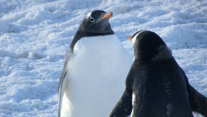 This morning Marna proposed that I could take her different sea sickness pills and so I try it. I feel already a bit better this morning anyway and it seems the other pills are much better for me. I can attend the very interesting presentation by our Polish guide Miko on living at an Antarctica station. I also manage some easy ground level yoga, lunch and a award winning movie on the Orcas living at Sea World, called Blackfish. I also pack and give away a few clothes I cannot carry once I am back hiking.