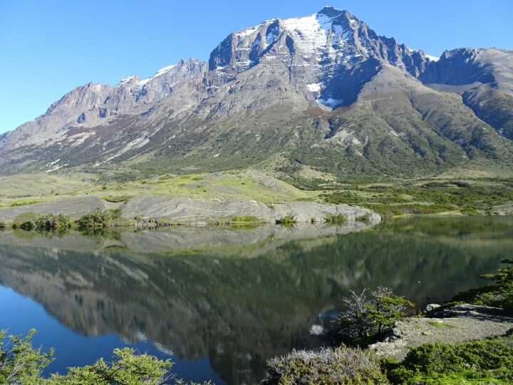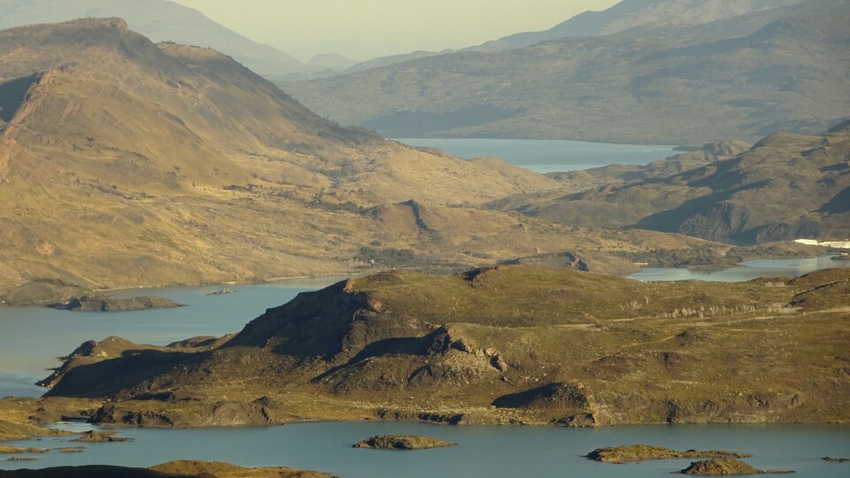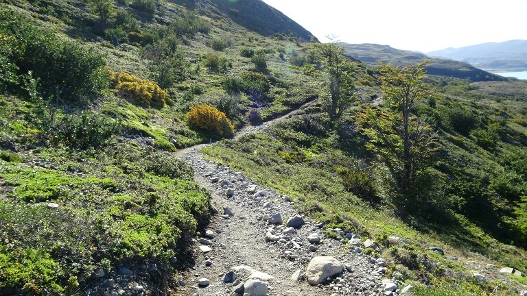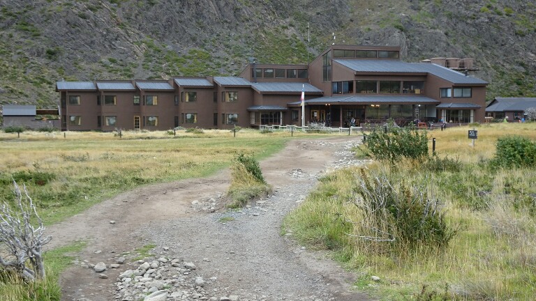 Then the trail leads through a nice little valley and suddenly I can see the big Paine Grande Lodge. I take a short rest here before continuing around 12am.