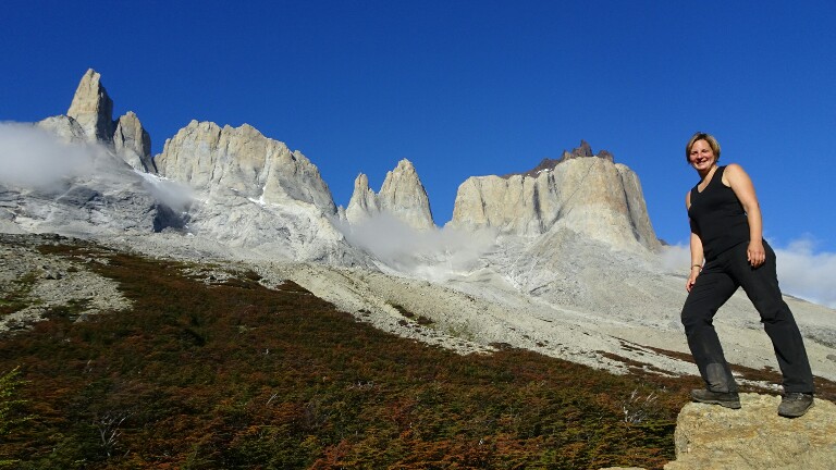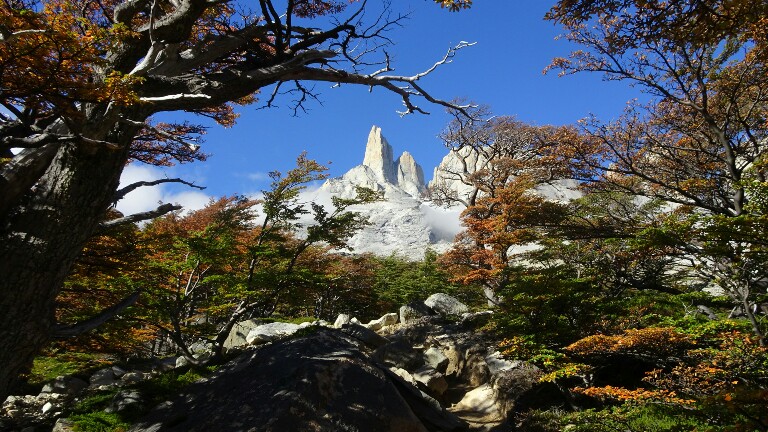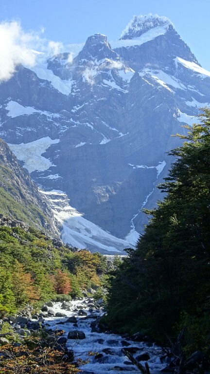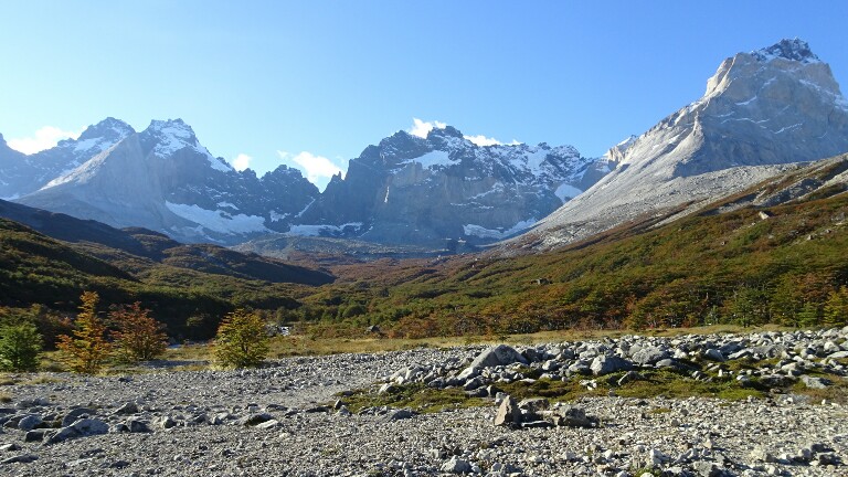 I walk fast now, realising it might actually take me at least 2h to get to Britanico (so far I was always much faster than the indicated time). It’s getting flatter and I can see the backside of the famous Las Torres I saw from the opposite side on my first day. They seem much more impressive from here, wider, bigger, higher. And above the colourful automn trees with the sunshine it’s just beautiful.