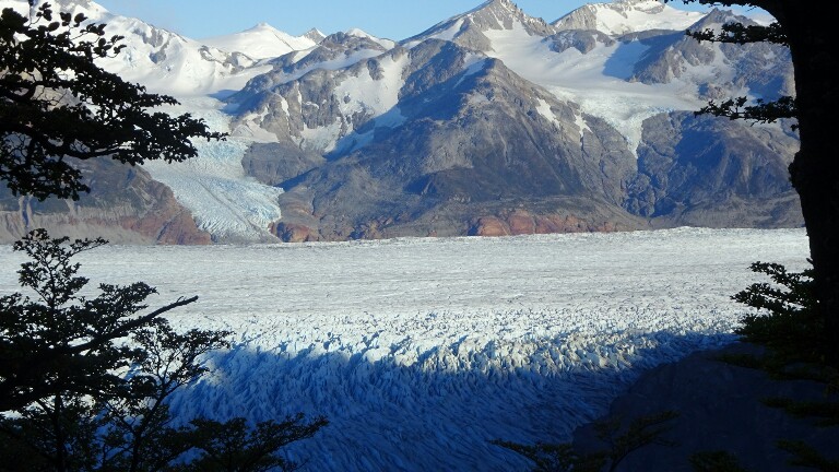 Then it’s a long way down on the other side of the pass, steep and mainly in the forest. It’s a pity we can’t see much of the glacier for a long time, but just after the Paso campsite, plenty of miradors allow to rest and admire the glacier. At the first one I take a lunch break, it’s only 11.30am but I am starving.