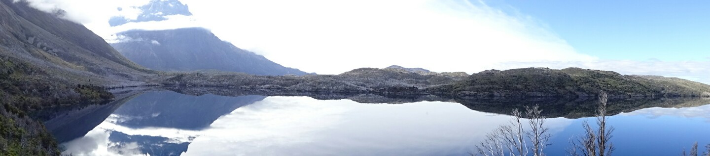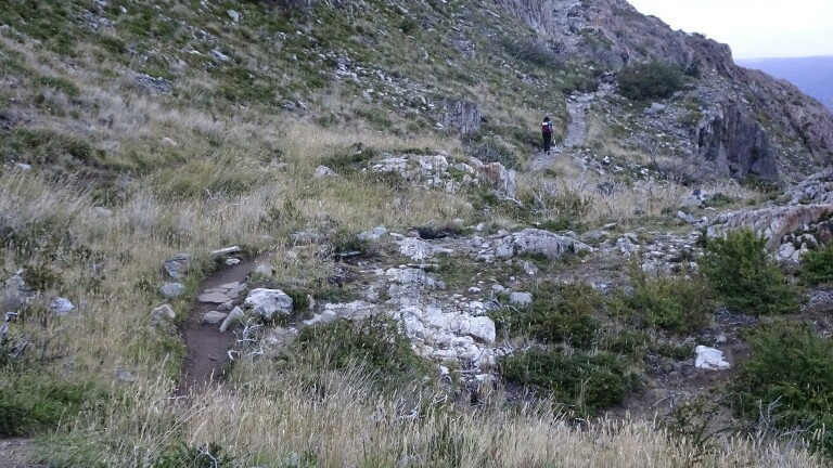 I hike through hilly terrain with dead trees. They were burnt in a big fire just a few years ago, its a shame what humans can do (accidentally but still…) to the nature. Coming the opposite direction, the Dutch couple I met in Puerto Williams, Puerto Natales and on the campamento Centrale. We have a chat, they also plan to go to El Calafate and El Chaltén next.
