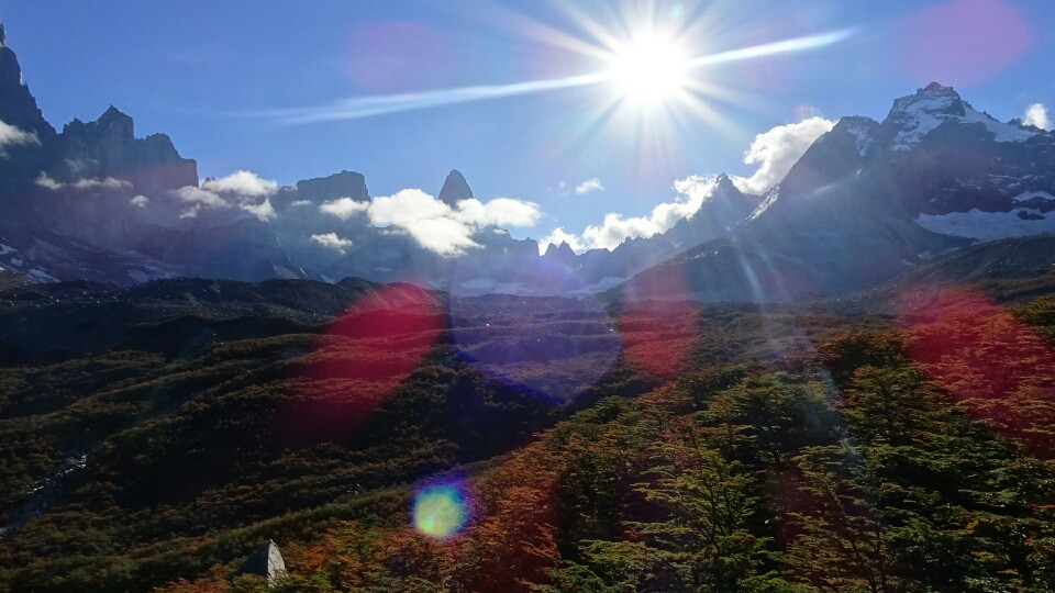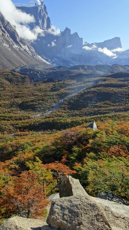 I walk fast now, realising it might actually take me at least 2h to get to Britanico (so far I was always much faster than the indicated time). It’s getting flatter and I can see the backside of the famous Las Torres I saw from the opposite side on my first day. They seem much more impressive from here, wider, bigger, higher. And above the colourful automn trees with the sunshine it’s just beautiful.