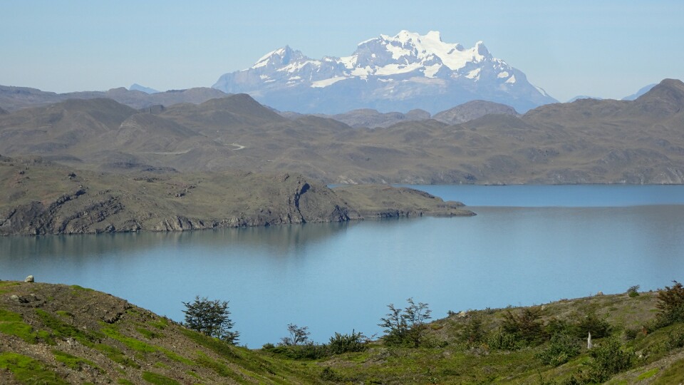 Then the trail leads through a nice little valley and suddenly I can see the big Paine Grande Lodge. I take a short rest here before continuing around 12am.