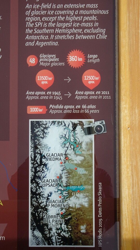 The others do a boat trip for another 400 pesos while I am dropped off for 4h during which I can discover the glacier view on my own. There are boardwalks everywhere and on the balconies information walls. The glacier is huge, it’s much bigger than glacier Grey, the front is 5km long and up to 70m high.