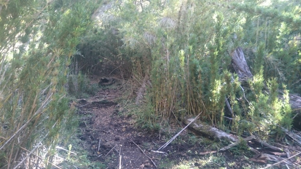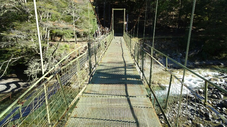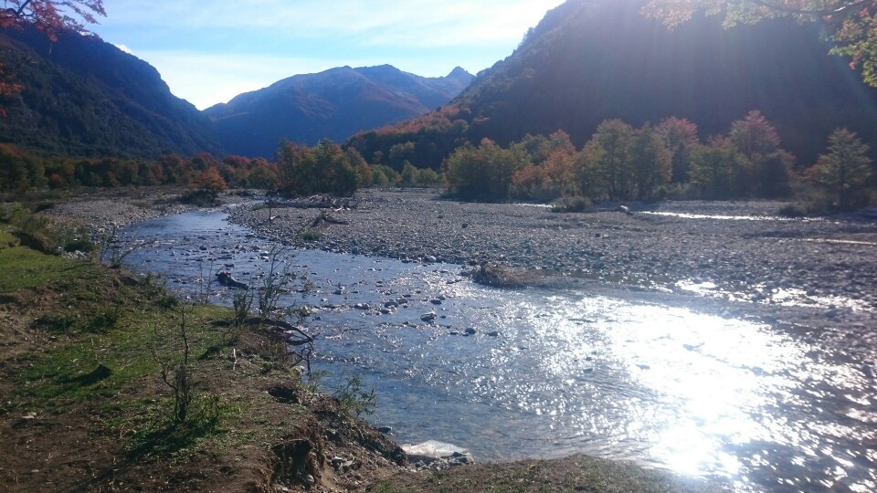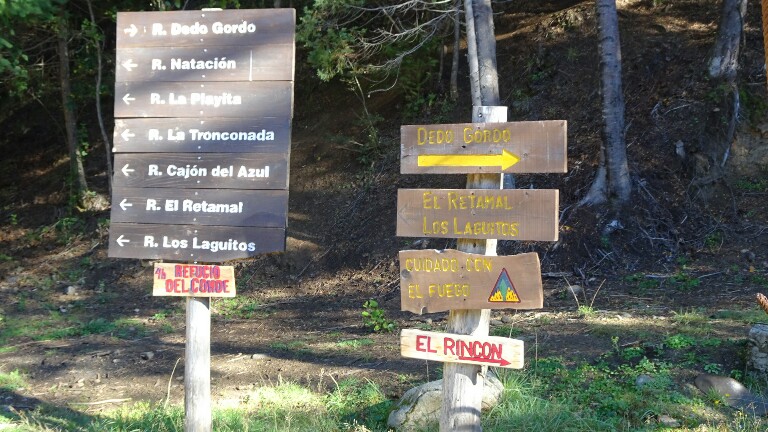 From there it’s just an hour to the next hut, Las Horquetas. The trail is now wide and easy along the river, beneath the pine trees. A quad is coming the opposite direction with a sheep in the trailer. The couple looks very tired and pale, asking me where I want to go. I say Los Laguitos and so the “conversation” starts. With my very basic knowledge of Spanish this means I start putting out words instead of whole sentences, hoping to understand the answer. So the couple tells me something about “cerrado”, meaning the Los Laguitos hut is closed. Then I say Las Horquetas, to which they reply it’s also closed. I throw in “possible acampar” a few times but my understanding is that no, I may not camp anywhere. Asking about another Refugio where I planned to go tomorrow, they don’t know and I seem to be allowed to continue there. So while yesterday everything was still open, they just closed down today.