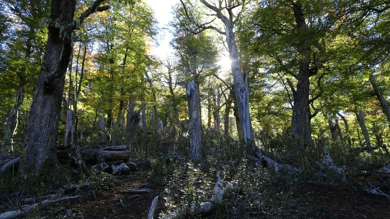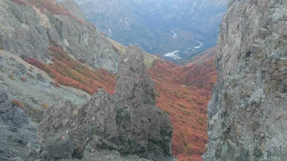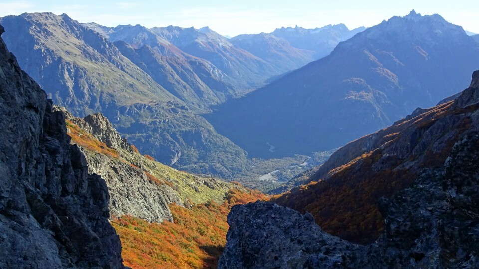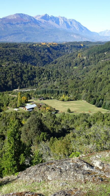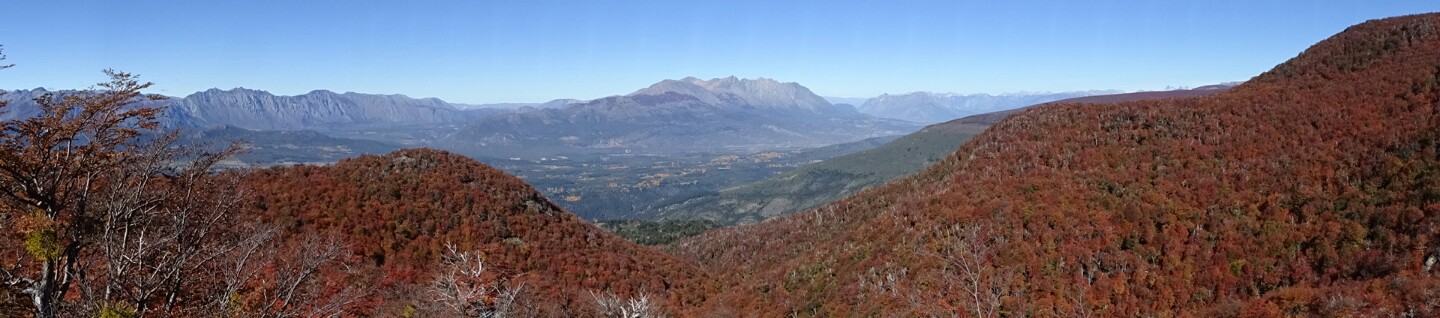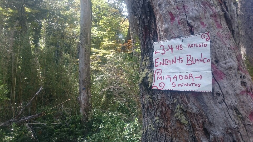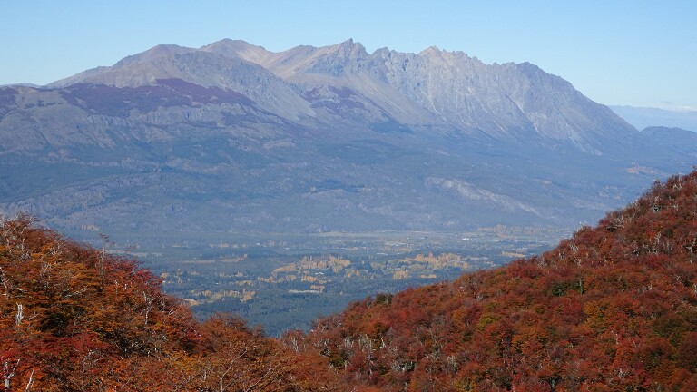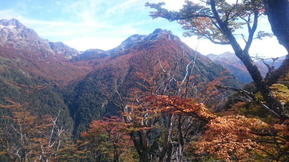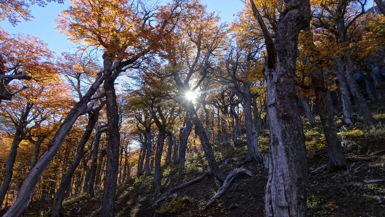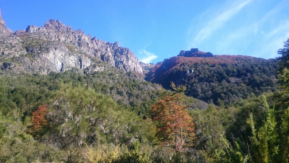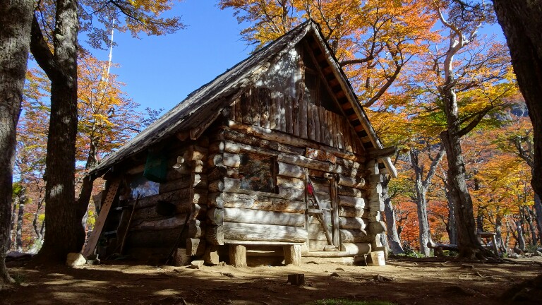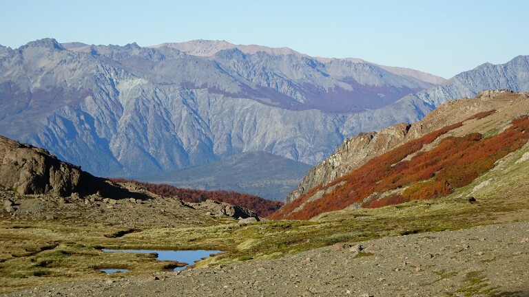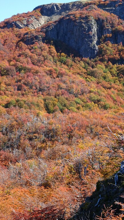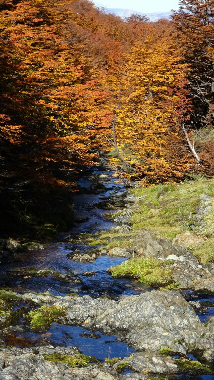 I continue on a well marked trail through a forest, all the time uphill. The trees are different here, not anylonger the tiny leaves of the lenga trees but a very German looking autumn forest. I feel like at home for a while, walking along a creek without seeing anyone. The hut where I want to go to is already closed and the few people who still go hiking here seem to go to the other huts.