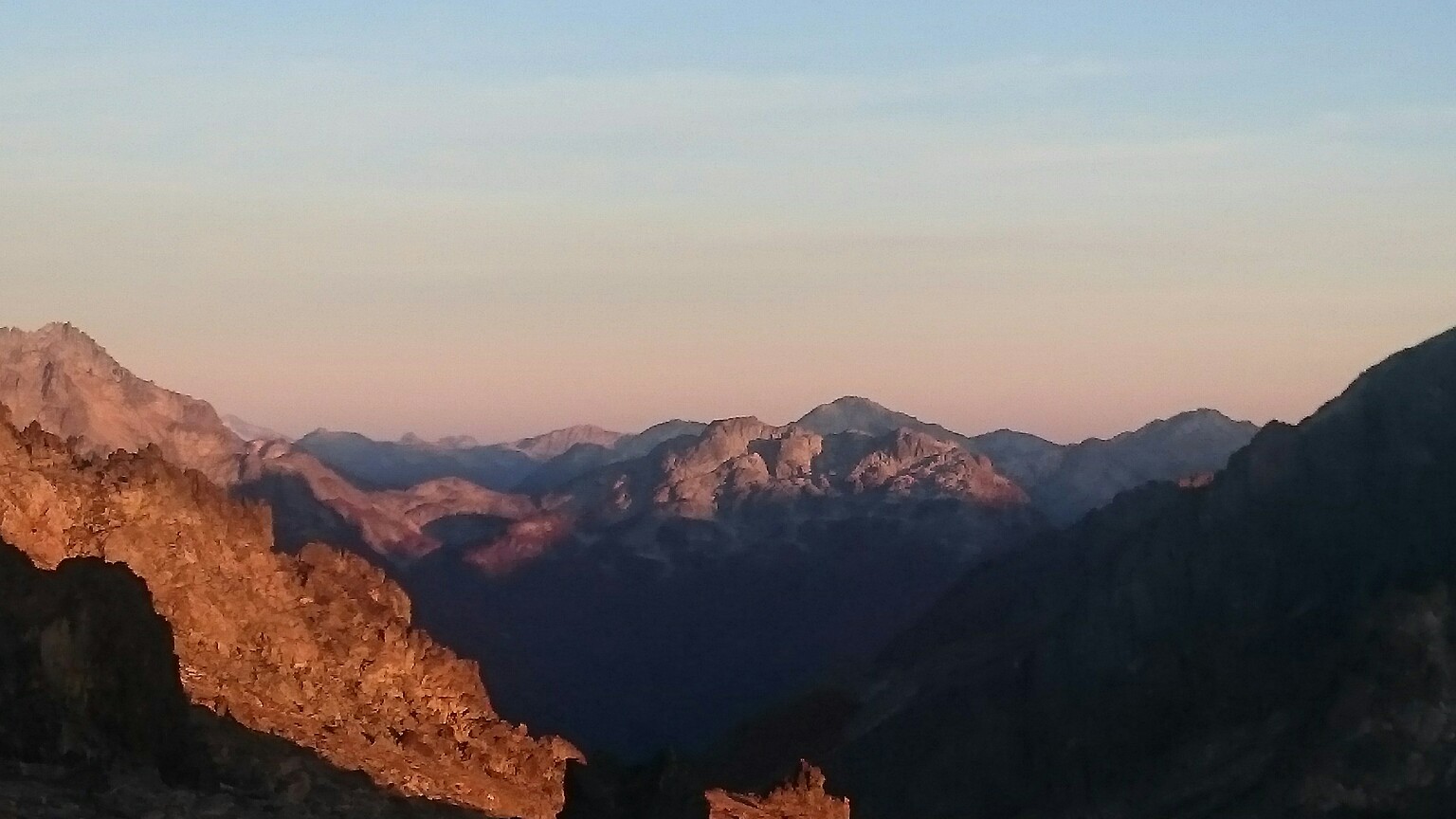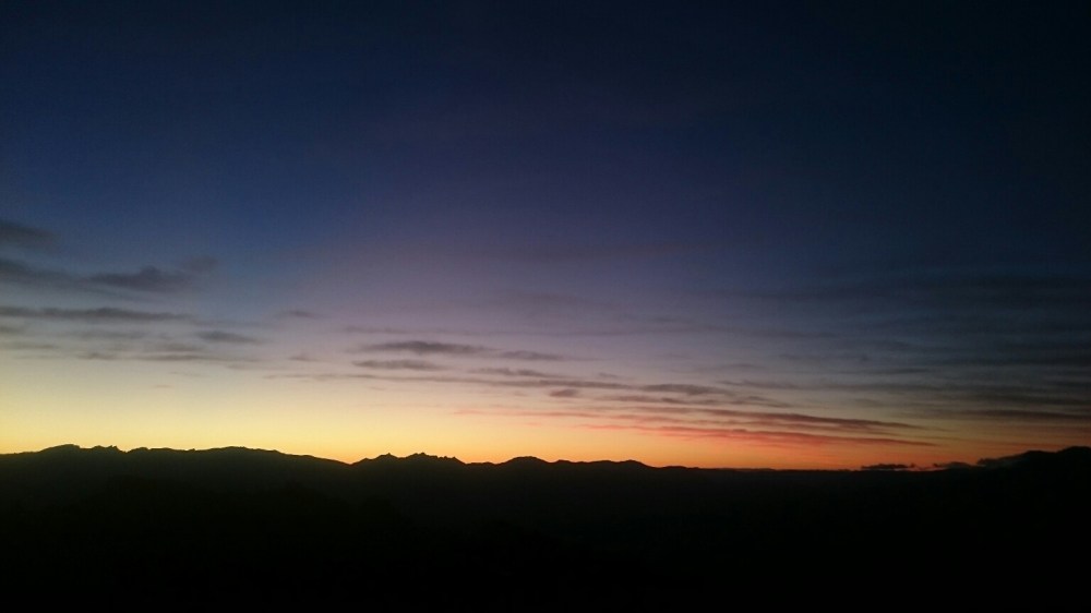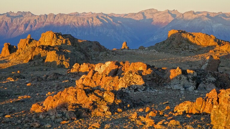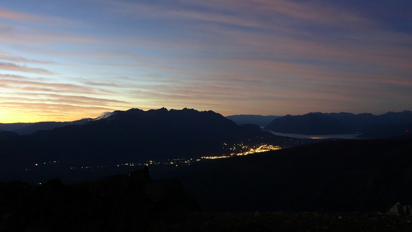 Dédo Gordo – Encanto Blanco – El Bolson The night was not too bad, warm but waking up many times. Finally it’s time for sunrise, I can see the lights of El Bolson shimmering down in the valley while the sun is slowly colouring the sky. It’s warm enough to just sit and enjoy with my breakfast.