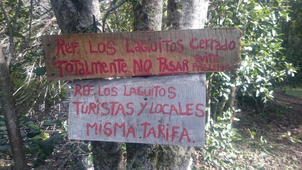 In the morning I enjoy the good breakfast of my hostel La Casona De Odile before packing up again, a small bag to leave in the hostel and my backpack and food for hiking. A taxi brings Henrike and me to Warton. A number of refugios can be reached from here and while I go for a longer more difficult one, it’s time to say goodbye to Henrike who will just stay one night at a hut. We have to register at the start and then walk across a hill and over a bridge. I then turn to the right, reaching soon a small ranch.