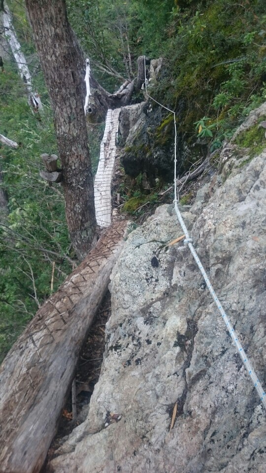 I hike on, thinking about my options. There are two signs that Los Laguitos is closed and that it’s not allowed to continue, but most importantly the owners doesn’t want me to go there (at least I think so). So when I reach the junction much earlier than I thought, I decide to push on and do a long day hiking out of here. The distances are much shorter and tomorrow is no bus, if I hurry up I can get the 7pm bus today. But first, a real steep climb on a new looking trail that was just carved out of the steep hill, sometimes with a rope. It’s exhausting to climb up and I am soaking wet soon.
