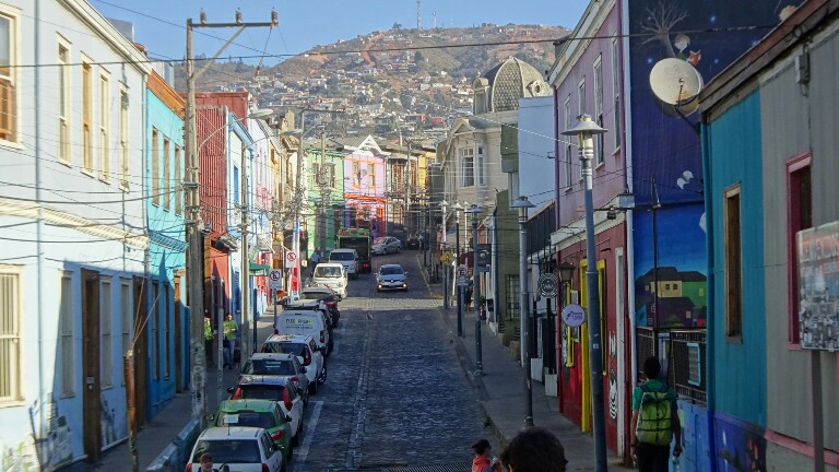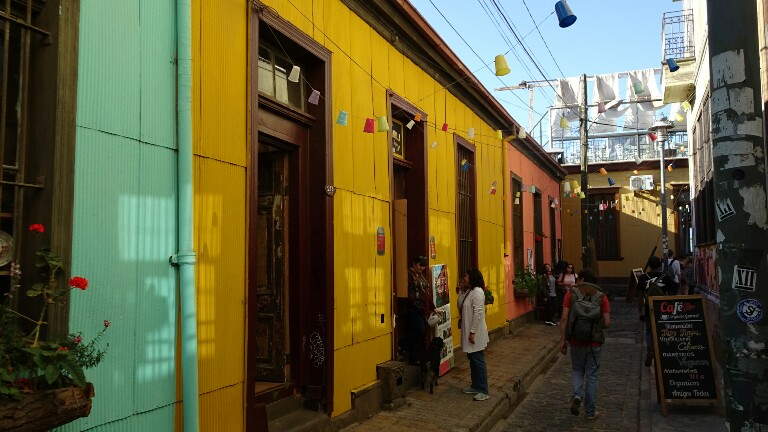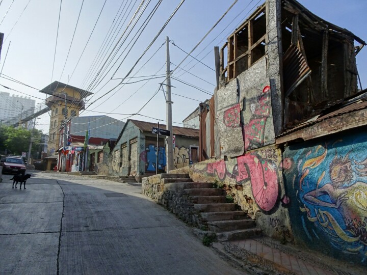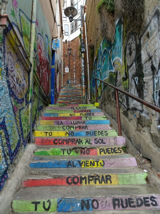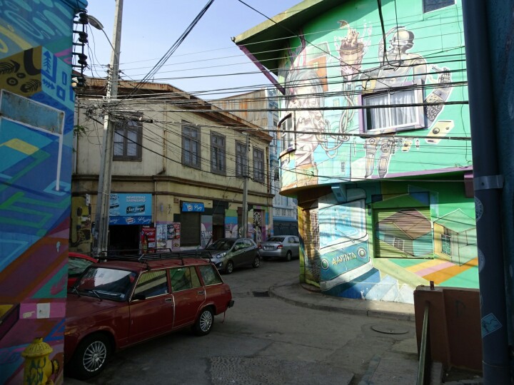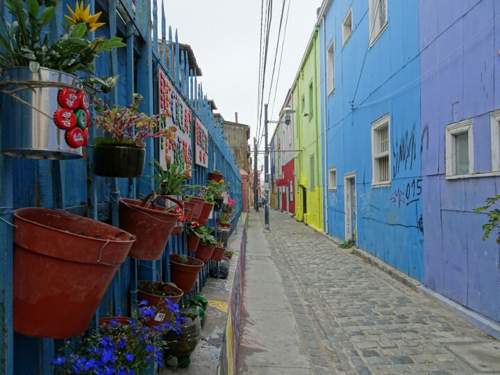 Some 100km west of Santiago at the sea is the city Valparaiso. It’s much bigger than I thought initially and it’s full of colours. Colourful houses, colourful street art everywhere. I spent 1.5 days walking around the town, torn between the loud, busy, noisy big streets I don’t like and all the great vibes, colours, street art but also touristy parts. My decision in the end is that I really like it because it’s so different from any town I’ve seen so far and I should just avoid rush hours. Because Valparaiso is a beautiful mess, I will just share a beautiful mess of pictures this time. No endlessly long blog about how I walk around 😉