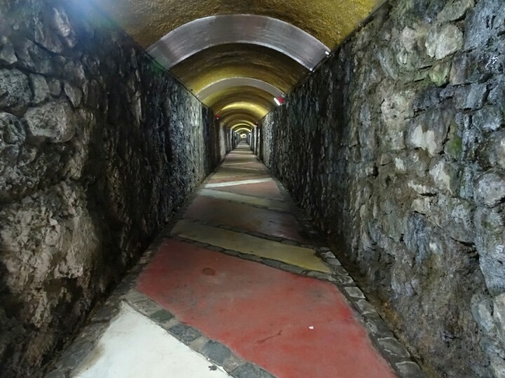 This time a tunnel leading to an elevator. Of course I could easily have walked up, but I would have missed out on the fun!