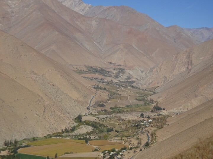 I sleep a bit but not enough as we already arrive at 5.45am in La Serena. The next bus to Pisco Elqui leaves at 6.50am, so I have time for a coffee. I try to sleep a bit more in the next bus, it’s anyway still dark outside. After Vicuna, the sun is rising and I enjoy the view of the valley despite the crazy fast bus driver.