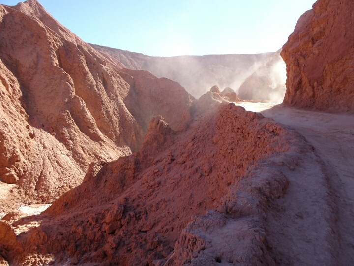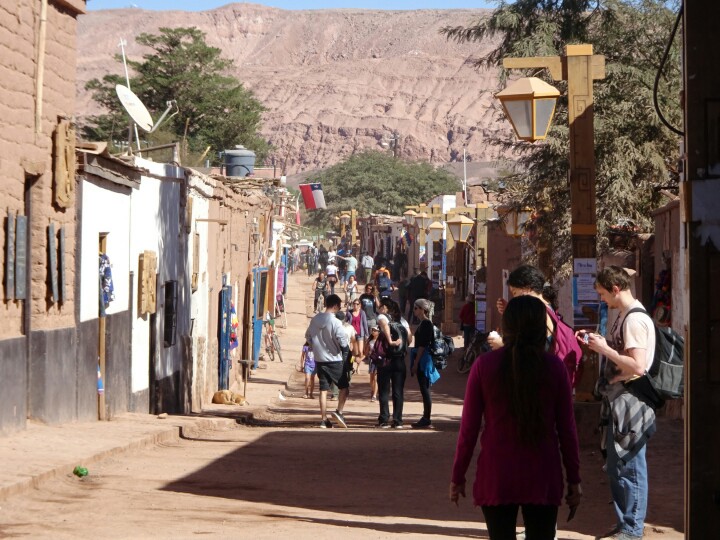 But first, I am enjoying life in the out of earth Atacama desert. My base is the little town of San Pedro de Atacama, an oasis in an arid high plateau at 2,400m altitude. I arrive there in the morning around 8.30am, after another night bus. This time I could sleep and after a breakfast in my hostel I take a walk around the town and meet up with Chris and Mim, an Australian couple I already met in a few other spots in Patagonia.