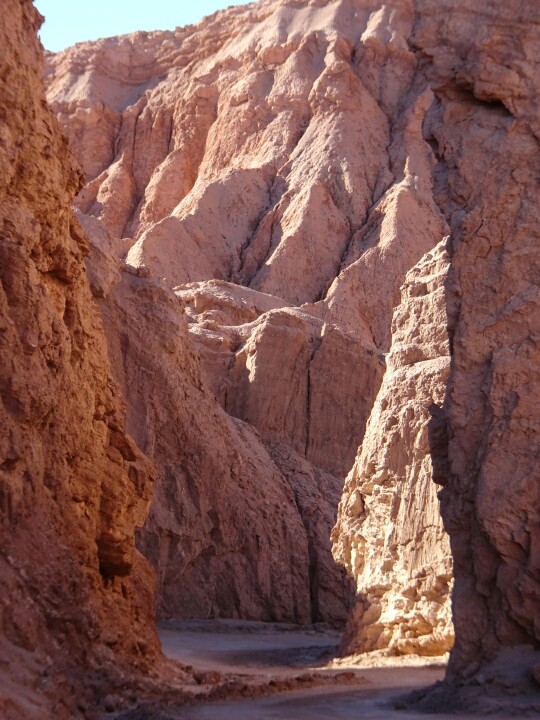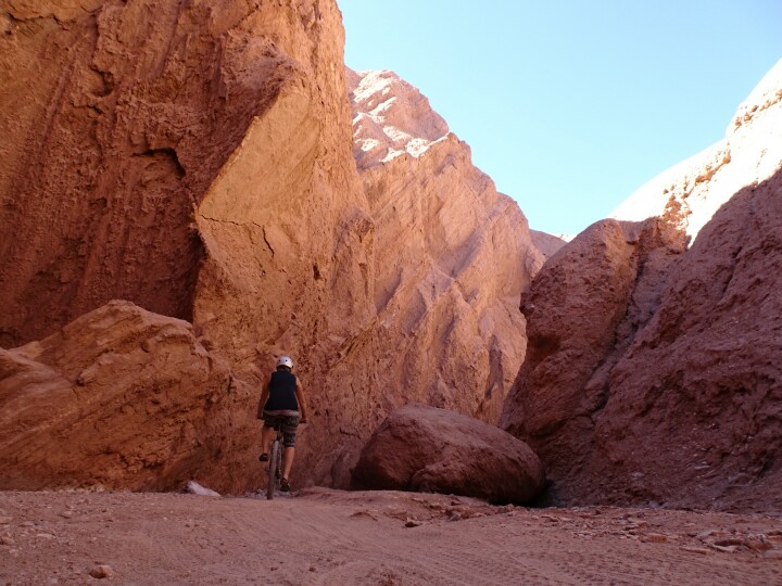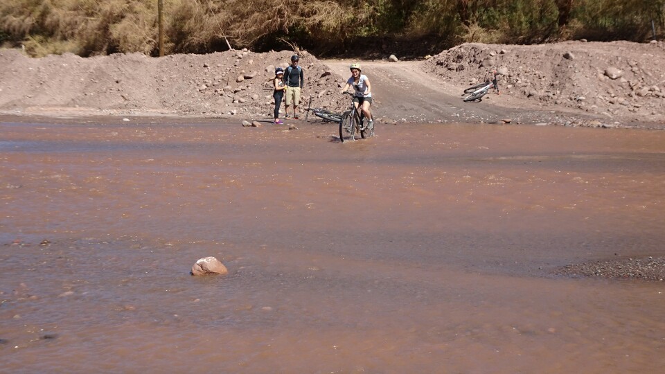 We rent a bike and ride out of town, to the ruins of Quitor (which we are too lazy to visit) and then further on (passing through some rivers) to the Cebrada del Diablo, the Devil’s canyon.