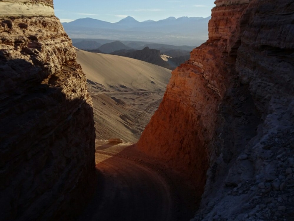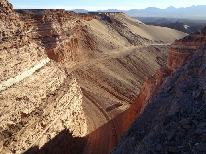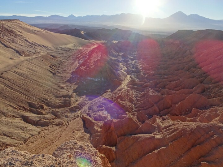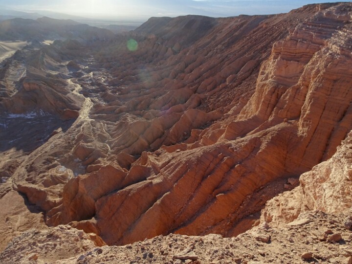 I kept my bike for the next day, getting up at 5am and biking in the darkness to a spot recommended by my hostel to see the sunrise. I am way too early but I also wanted to see the sky at night. Unfortunately it’s almost full moon and the starlit sky a bit disappointing (also the observatories are closed around full moon). I cannot quite find the spot but enjoy my time anyway with the slow sunrise above the Valle de la Muerte, the death valley. The view is spectacular, I am above a cliff overlooking the valley below.