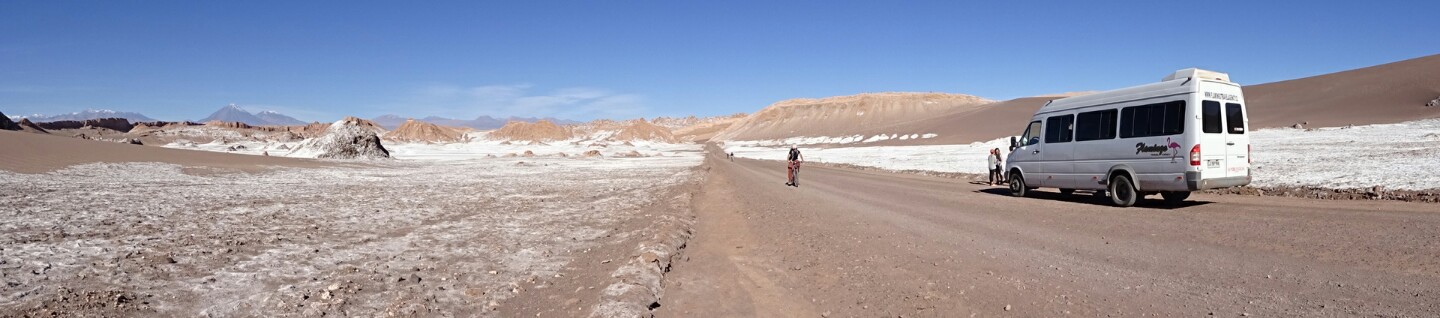 Back into town I take a break at my hostel and then bring my bike back to the rental place. With Chris and Mim, we enquire with an agency about the tours and spontaneously book a tour for the same afternoon to the moon valley, la valle de la luna. I have just an hour to walk back to my hostel a bit outside of town, grab some warm clothes and water and walk to the agency where the bus leaves at 3pm.