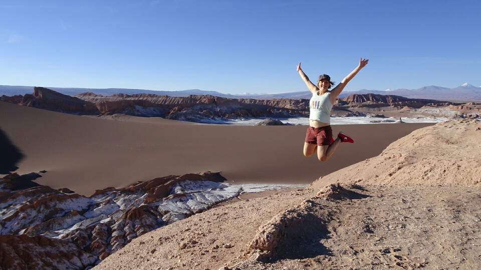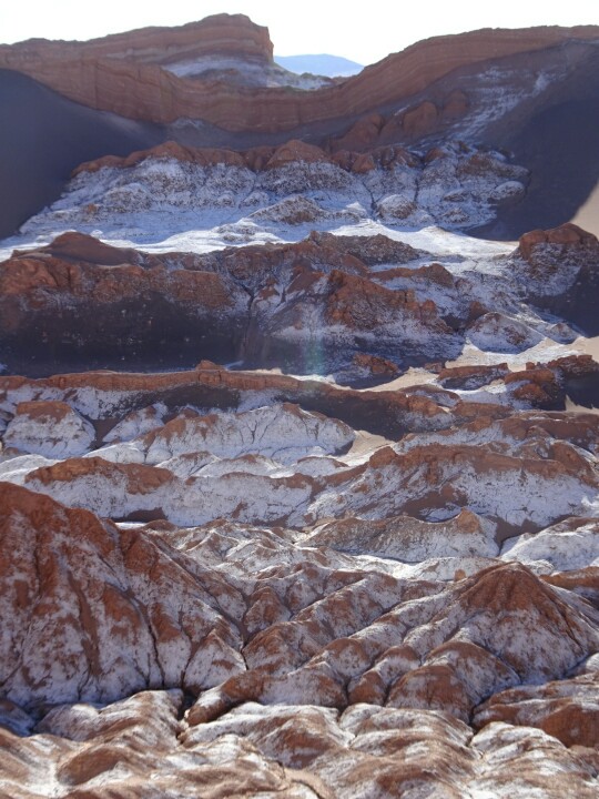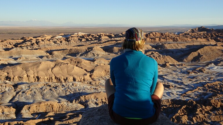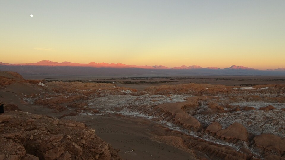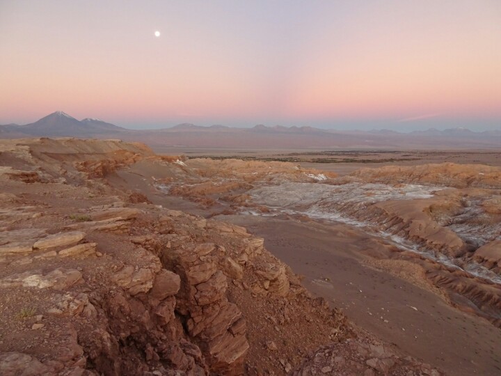 We are taken to the end of the valley to the 3 Marias. The guide is doing this tour for the first time and it’s hard to follow his story, very confusing so I give up after a while. It’s still a beautiful place and I will just focus on the nature! After the 3 Marias we stop at a few other viewpoints and hike a bit up the hills. Then we drive out of the valley and up to the viewpoint of the Valle de la Luna to see the sunset. With a small snack and juice we enjoy the sunset and the moon rising, colouring the sky and mountains. When it gets dark we are driven back into town and with another girl, Chris, Mim and I go for a nice dinner in a restaurant, a great ending of a day packed with plenty of beautiful nature!