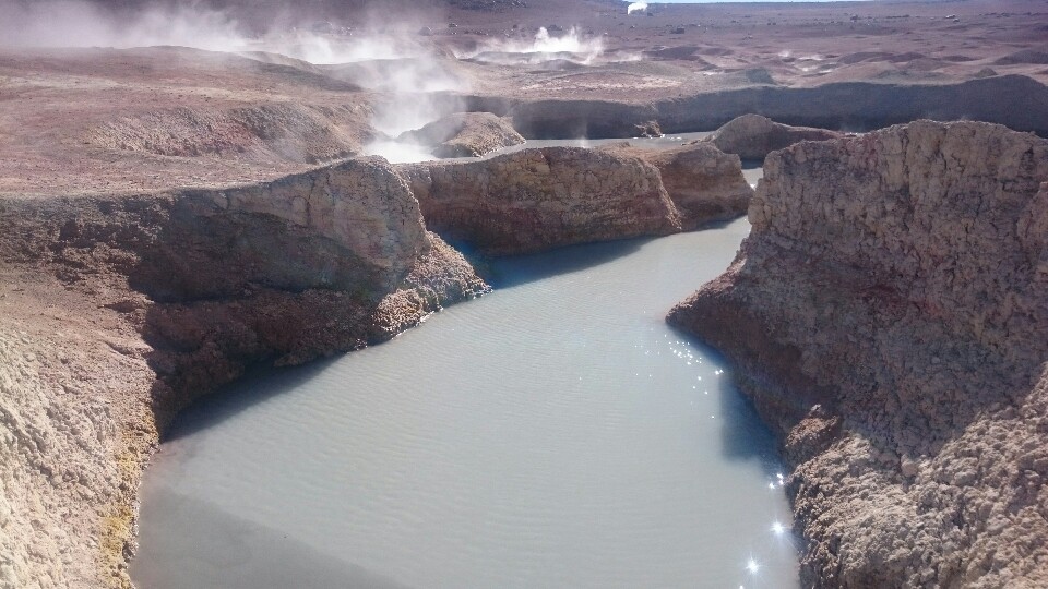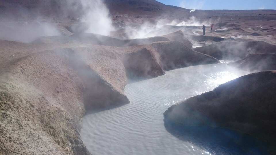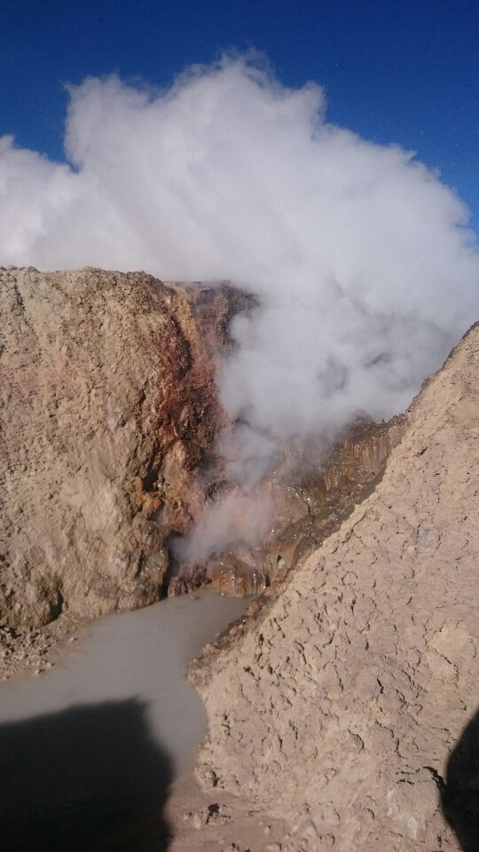 We have to continue, as we started 3h later than usually there’s not much spare time. Next stop is at the impressive Sol de Mañana geysirs (morning sun), with 5000m elevation the highest point of our tour. The steam is pretty cool and also the boiling water and mud. Just my camera is making problems, it’s not working again.