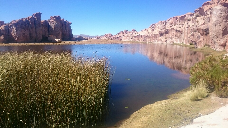 Then we drive to our hostel for tonight, a newly built house, very clean and nice where only two of us have to share rooms. We are at 3,700m altitude but today everyone feels better. For 10 Bolivianos 1,40€) we can have a hot shower and I go for it. We have tea and crackers and later a good dinner – until I take a Chili instead of green pepper and get all red, with tears running down my face until I manage to sooth my mouth with some other food. We even share a bottle of wine (included) and laugh and talk. The perfect ending? The sky at night, no moon (where has it gone?), no lights around, just the milky way and us. World, you are so beautiful!!! No pictures – no working camera but memories forever.
