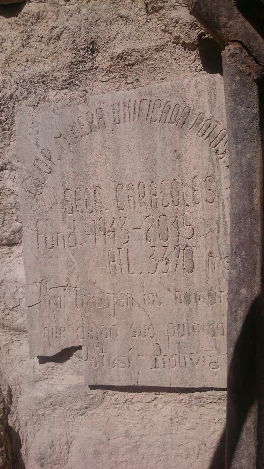 Today it’s no longer managed by the government but by cooperativas. Miners sometimes pay a tax to these for some health insurance, but not all can afford. We walk off the main well to a smaller one. It’s very dark and we can hear explosions in the distance. Then a ladder up to a very small cave. My guide lits a lightbulb (there’s electricity down here) and then points to a tiny well going further up. I already have difficulties to not panic down here so I tell him I cannot go up. So he makes the two miners come down. Father, 39, working here for 23 years and son, 18, working here for 3 years already. Some started even younger. But all look much older. There’s no mask protecting their mouth and nose from the dust. They are happy about the coca leaves and juice. They are working only on extracting quality stones, sometimes making 900 Bolivianos (about 130€) a week with about 5kg of stones, sometimes much less. Others who were pushing the chariots are extracting in quantity, trucks waiting outside to carry the rocks further. The conditions today are horrendous. How must it have been hundreds of years ago? Even worse of course. The Spanish made the Incas and Africans work inside the mine for weeks without getting out. The Africans died because of the altitude they were not used to.