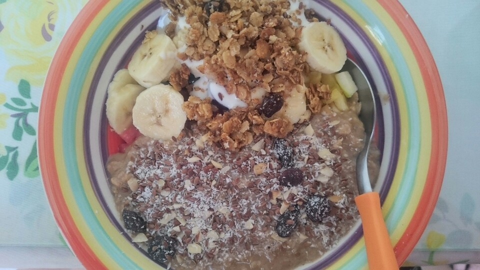The next morning I am more energetic. Breakfast is really good, a big bowl of good oatmeal, fresh fruits, yoghurt.