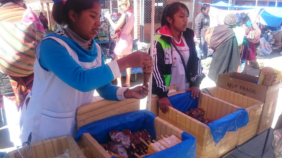 Laziness gets me on the next day. Oliver and I plan our hiking trip and further journey to La Paz before walking to the bus to see Dinosaurs footprints. The streets are so full that we realise after 10 minutes and only a few hundred metres further that we will not make it to the 12am tour. So we get out again and grab some Salteñas instead. They look like empanadas but have a different dough (sweeter) and a more elaborated and harder to eat filling (quite jucy!).