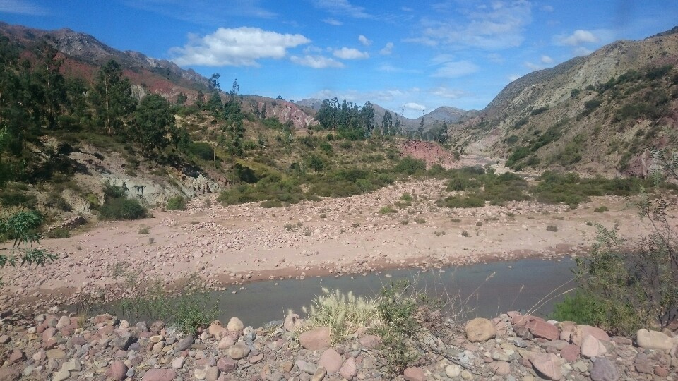 When we reach the dirt road we have to pay 10 Bolivianos to support the local community / the national park. We continue à few hundred metres on the road before descending further on a trail into the valley where we join the road again. After a while it’s really time for lunch and we stop at the road (where just a handful of cars pass by anyway). The sun warms our backs and I enjoy the view of the valley and the river, and our lunch, bread with avocado.