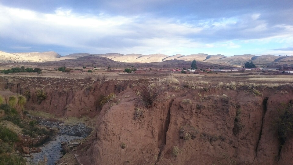 I sleep rather OK, my stomach feeling a bit uncomfortable but Oliver has a bad night, throwing up. He cannot walk in the morning, so we decide that we try to arrange transportation back to Sucré from here instead of continueing to Quila Quila to catch a bus there. The problem is that it’s unclear whether there is a bus from Maragua, there might be one at 2pm but with the public holiday they are uncertain. While Oliver sleeps, unable to get up, I try to find a solution. Luckily at the other hostel they are very kind and offer to take us to Sucre in their car. It’s expensive (for Bolivia) but it seems the only choice. I tell them that we can leave at noon only as Oliver needs to rest a bit longer before taking a 2h ride on a bumpy road. It’s a nice day and I walk up to a hill to enjoy the view of the crater.