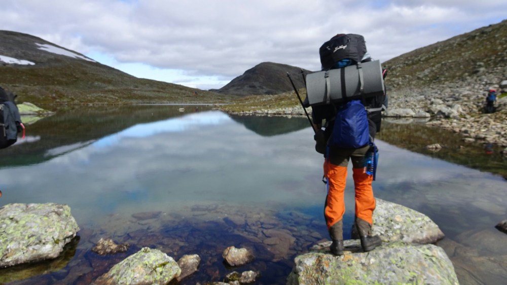 Ugh, another wake up call at 6.30am after a bad night of sleep. The tent is tiny and of course under the current weather conditions a lot of condensation occurred over night, so the ends of my sleeping bag are wet as well. But a beautiful day is coming up, the sky is clearing up as we take our breakfast and pack up our tents. The clinic with the Klåttermusen team is hence outside. Quite a unique brand with a special spirit 😉