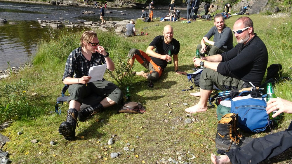 Too soon we reach the river, at the other side the Enaforsholm lodge where we are staying tonight. A last river crossing and we are welcomed with a cold cider before the final exam where we are tested about the key messages 😉