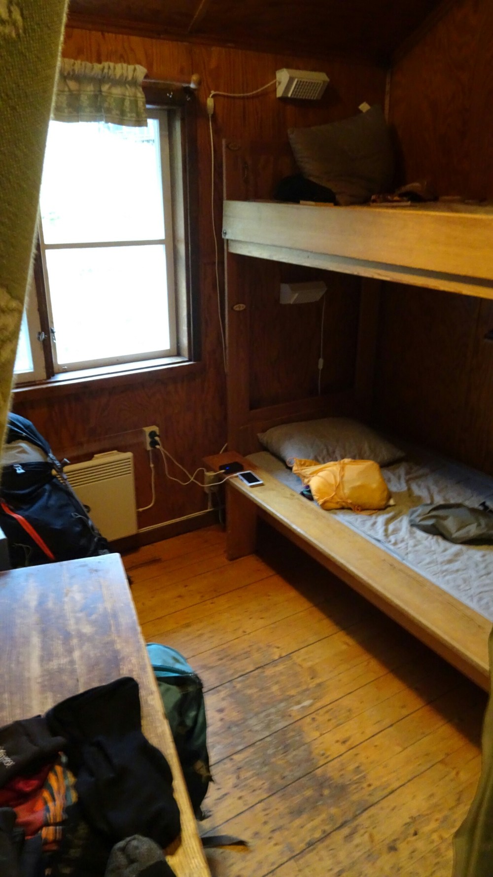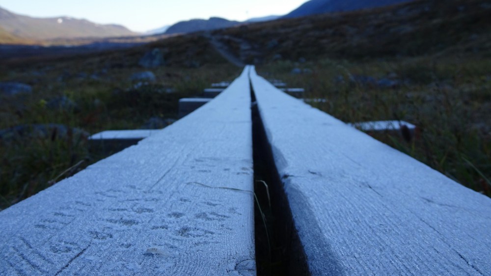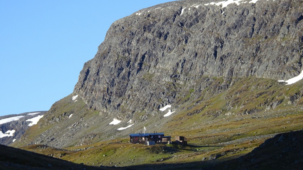 At the hut I find a spot on the couch at the window, it’s warm and cozy. After quickly telling everyone at home that I am still alive (no signal the last days!), I get an apple pie and hot tea. What a treat! I am still trembling from inside though and a quick check outside shows me that I can’t really sleep in my tent tonight after having been frozen to my bones today. There are two beds left (the Fjällstation is huge, 220 beds!) but after the first shock about the price is over (almost 85€!!!), I take it anyway. Included: my own bed (luckily the nice Dutch guy proposes himself to change for the upper bunk) in a “room” closed by a curtain to the hallway, heater, sauna, shower, usage of the kitchen, a plug next to my bed, towel. A splurge today. For my next time in Sweden (or Iceland or Norway or…) I promise myself to buy a real 4 season tent and bring my warmer sleeping bag! And warmer gloves. And maybe a gas heater????