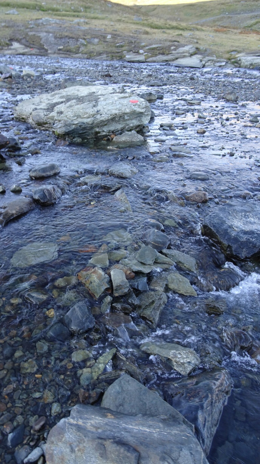 But time to leave for the summit. It’s not too tough in the beginning, I follow the trail marked just with occasional stone piles (my new best friends!) along the river. The river crossing doesn’t look difficult but the stones are so slippery I have to be very careful.