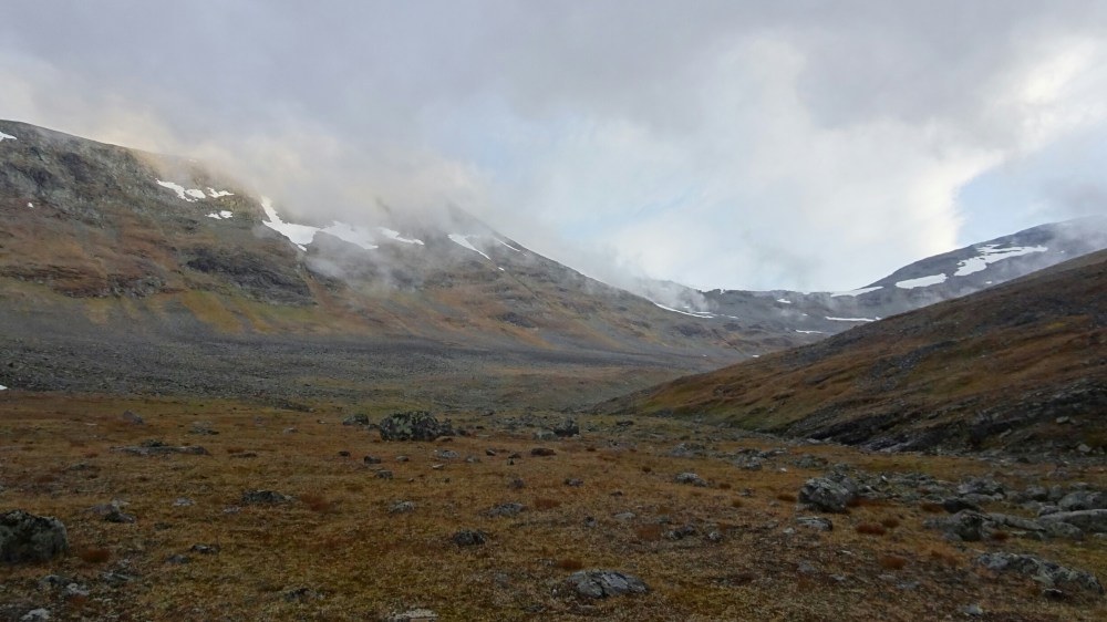 Another good night (sneaking out of my tent twice to check for Northern Lights but no luck). I wake up really early (with puffy eyes again, must be the cold) and the weather looks promising. Clear sky where I am, clouds further East but hopefully disappearing. (Well, at least I can say I was optimistic for quite some time!) Today I already start hiking at 6.30am. Just me and this beautiful valley that I love since yesterday.